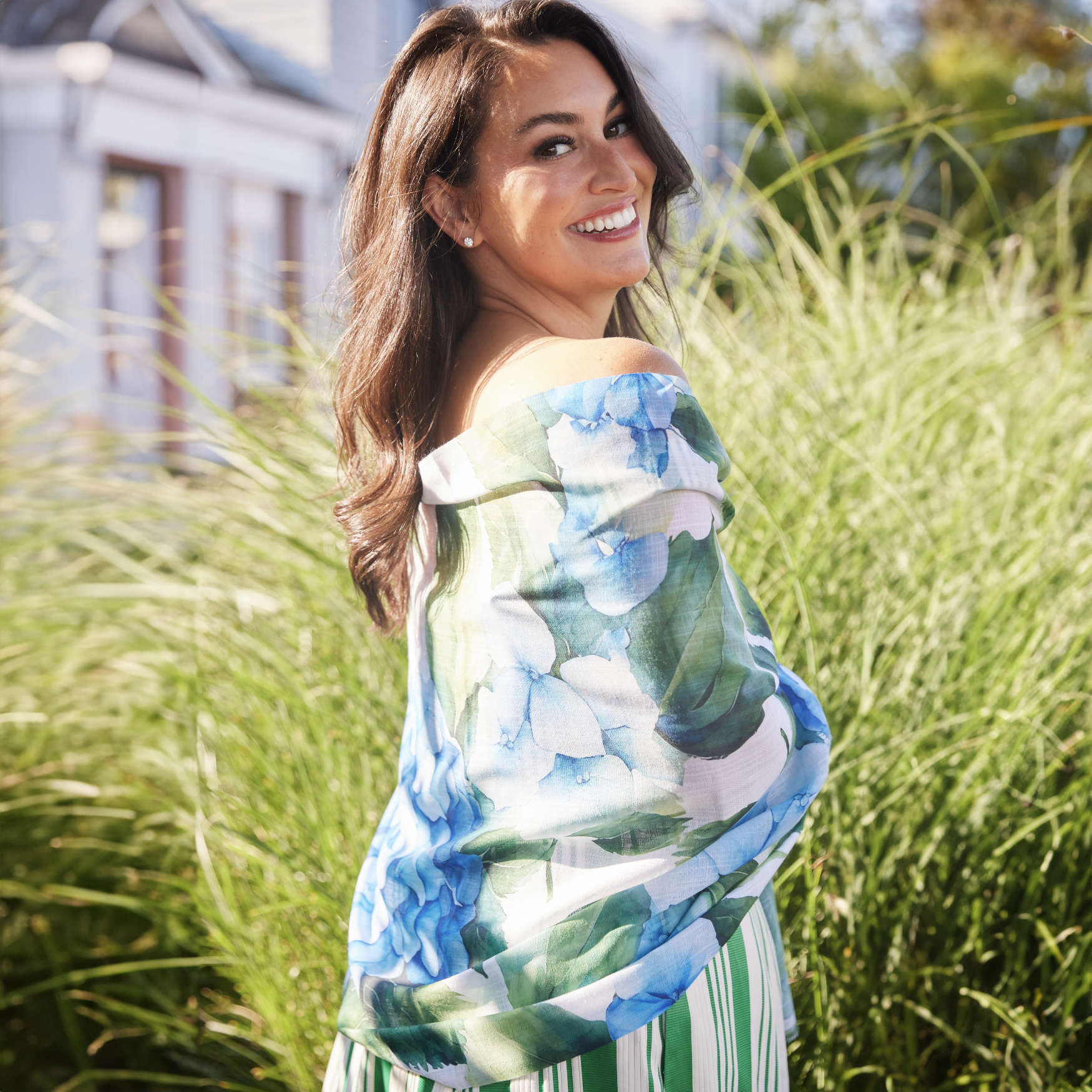 Crafted in a soft 70/30 cotton-poly blend, the sheer weave and delicate watercolor blooms bring an elegant splash of hydrangea blue to your look. Whether you wear it as a scarf, a wrap, or a travel staple, it’s the kind of accessory that makes every day feel like summer by the sea.