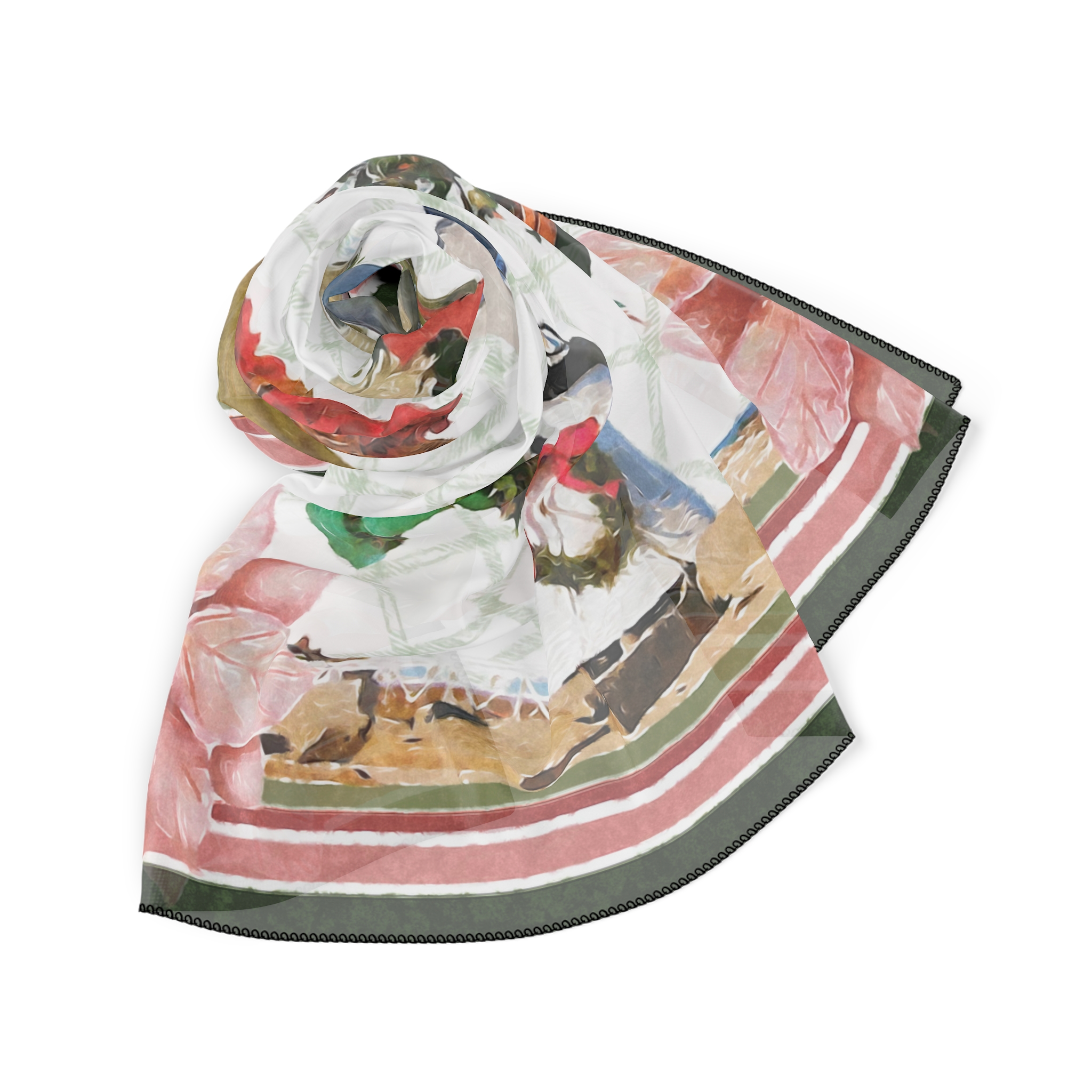 Celebrate the spirit of Nantucket Stroll with a scarf designed for all your most festive coastal moments. Crafted from a silky, lightweight chiffon voile, this scarf feels soft, airy, and effortlessly elegant. Its sheer finish and fluid drape make it as beautiful to wear as it is versatile — tie it around your neck, your ponytail, your bag, or your holiday outfit for an instant touch of Stroll chic.