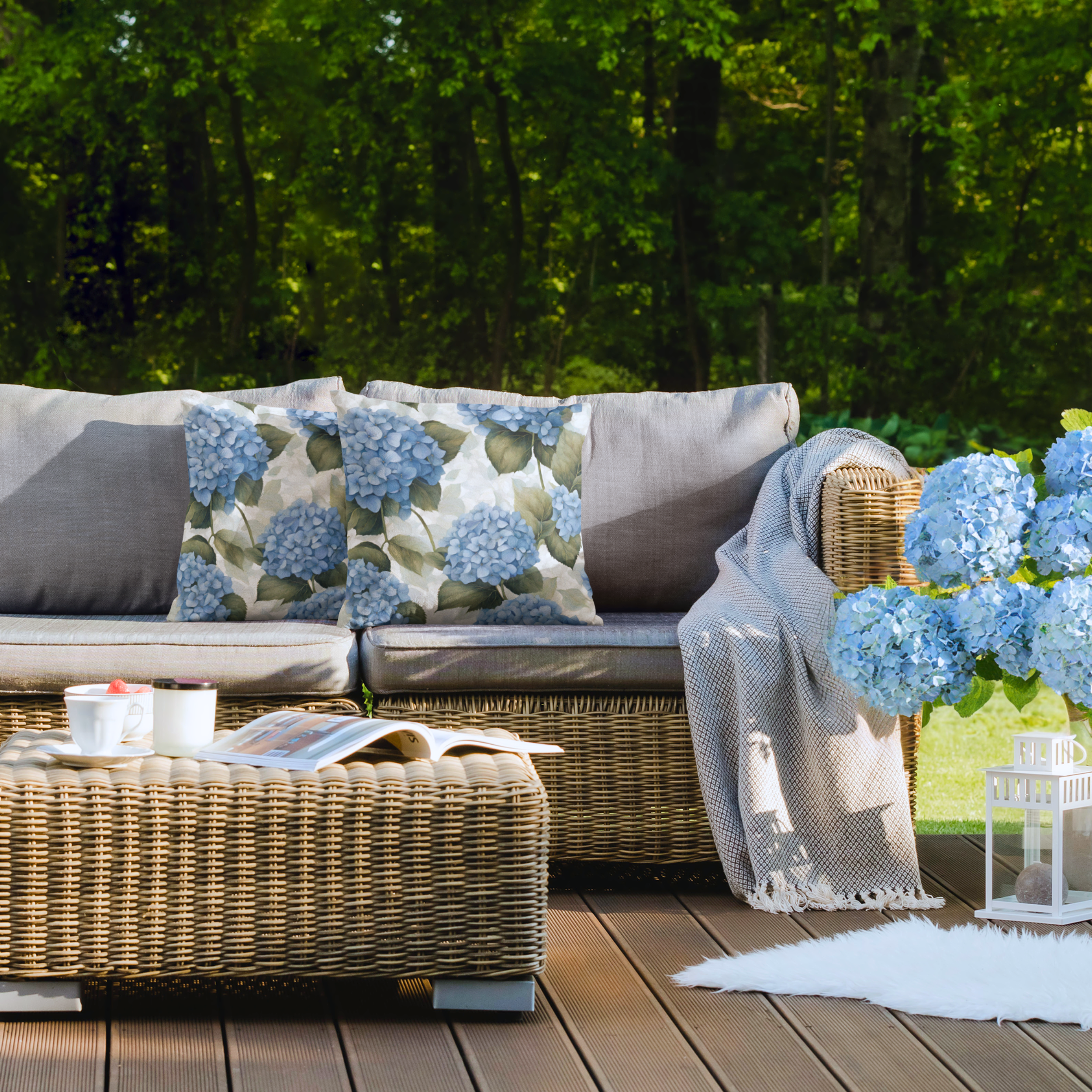 Bring timeless coastal charm to your outdoor space with our signature hydrangea pillows. Sized at 20″ x 20″ and sold as a set of two, these pillows come blown and closed (stuffed, no zipper) for a plush, ready-to-use finish.