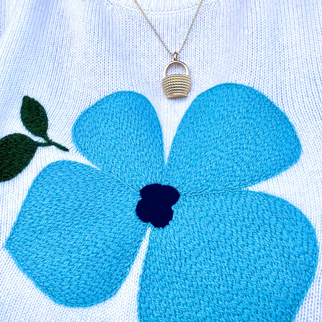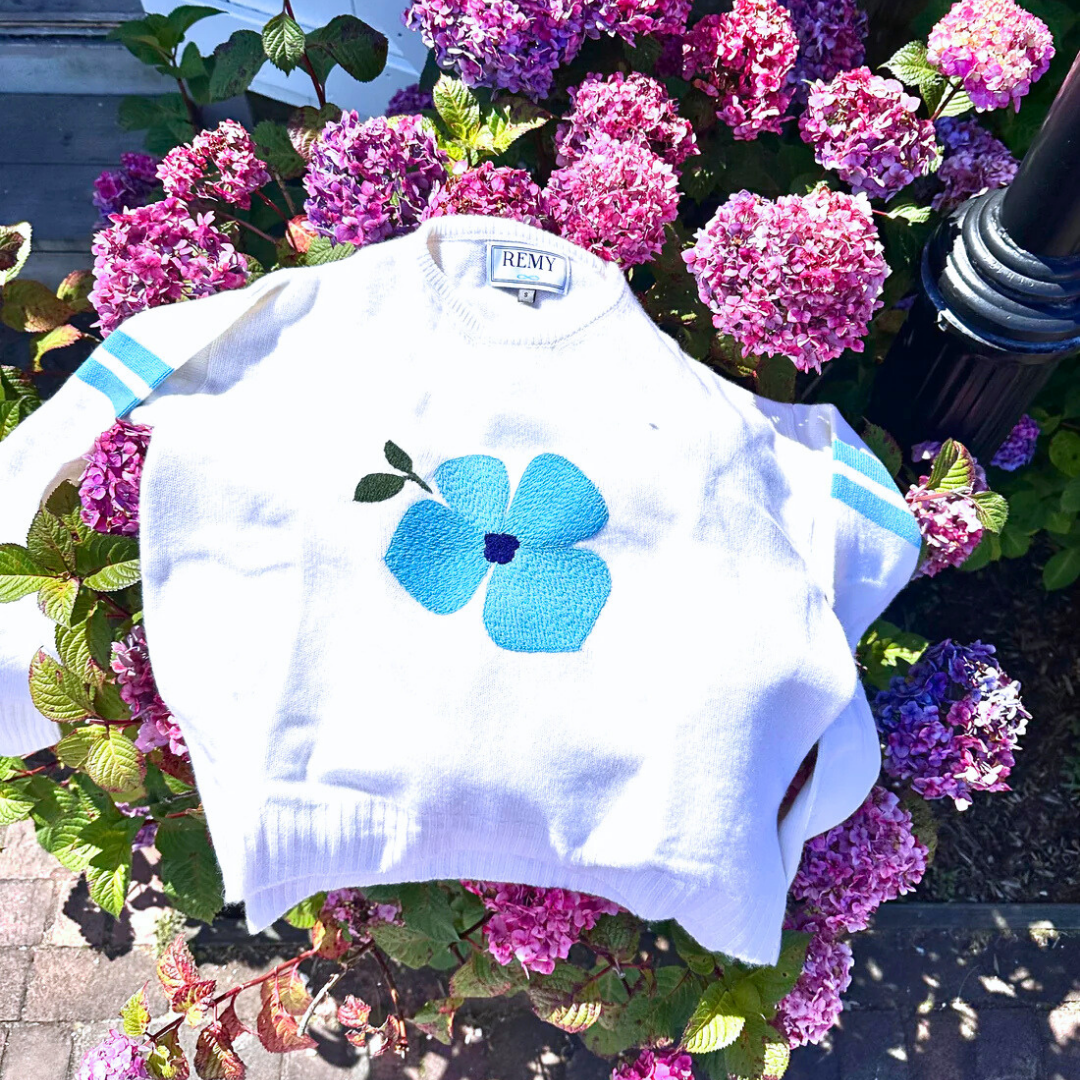 This limited-edition sweater celebrates our signature bloom in the most luxurious way—crafted from 100% pure cashmere and designed in our beloved dropped-shoulder, boxy silhouette. Soft, cozy, and effortlessly chic, it’s finished with our signature double stripes on the sleeves, adding a touch of sporty elegance to the classic floral motif.