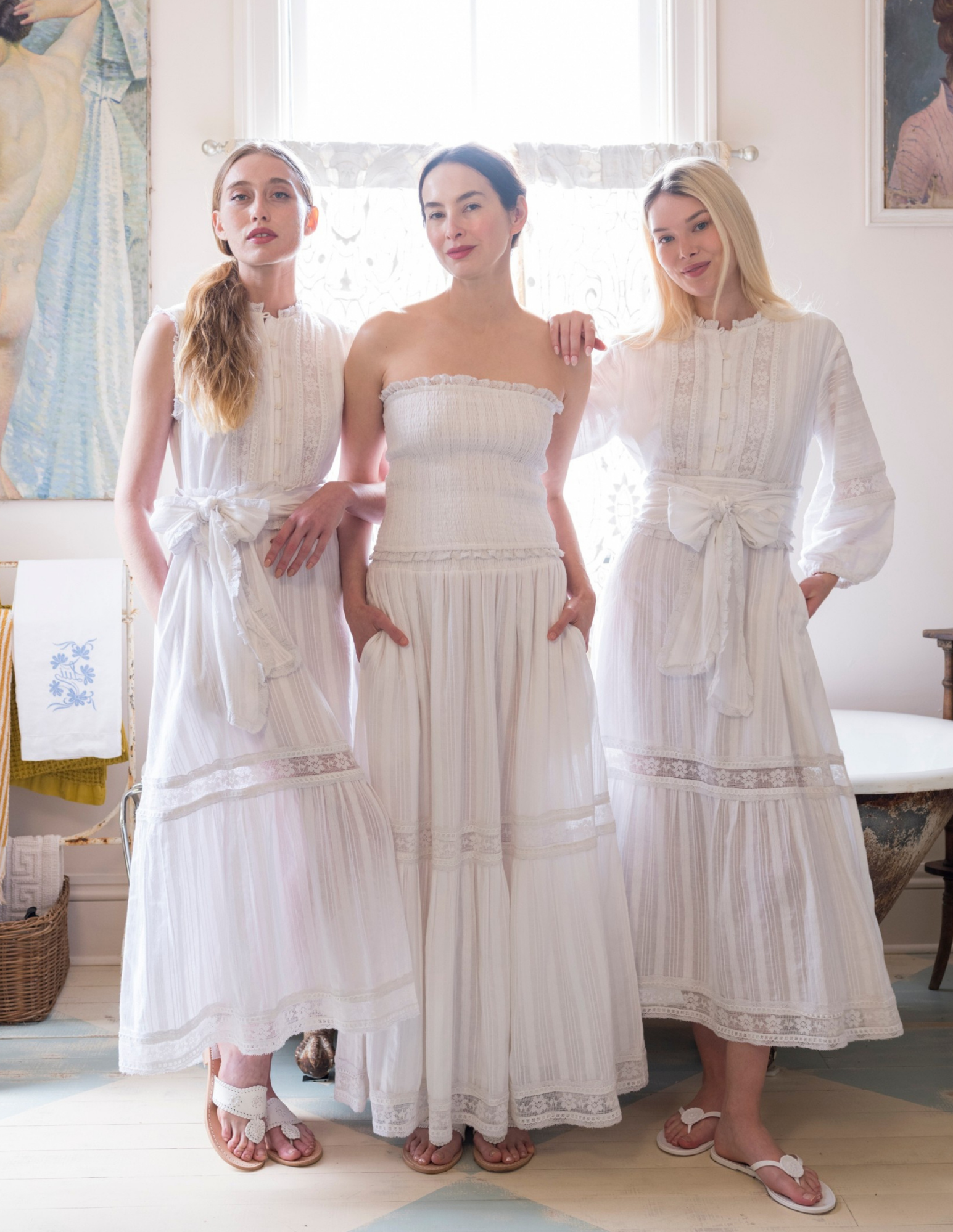 Her signature silhouettes, especially the flounce dresses and easy maxis, are the kind you can wear in a hundred different ways. Sandals and a straw tote during the day, something a little more dressed up at night. They travel well, they photograph well, and most importantly, they just feel good to wear.