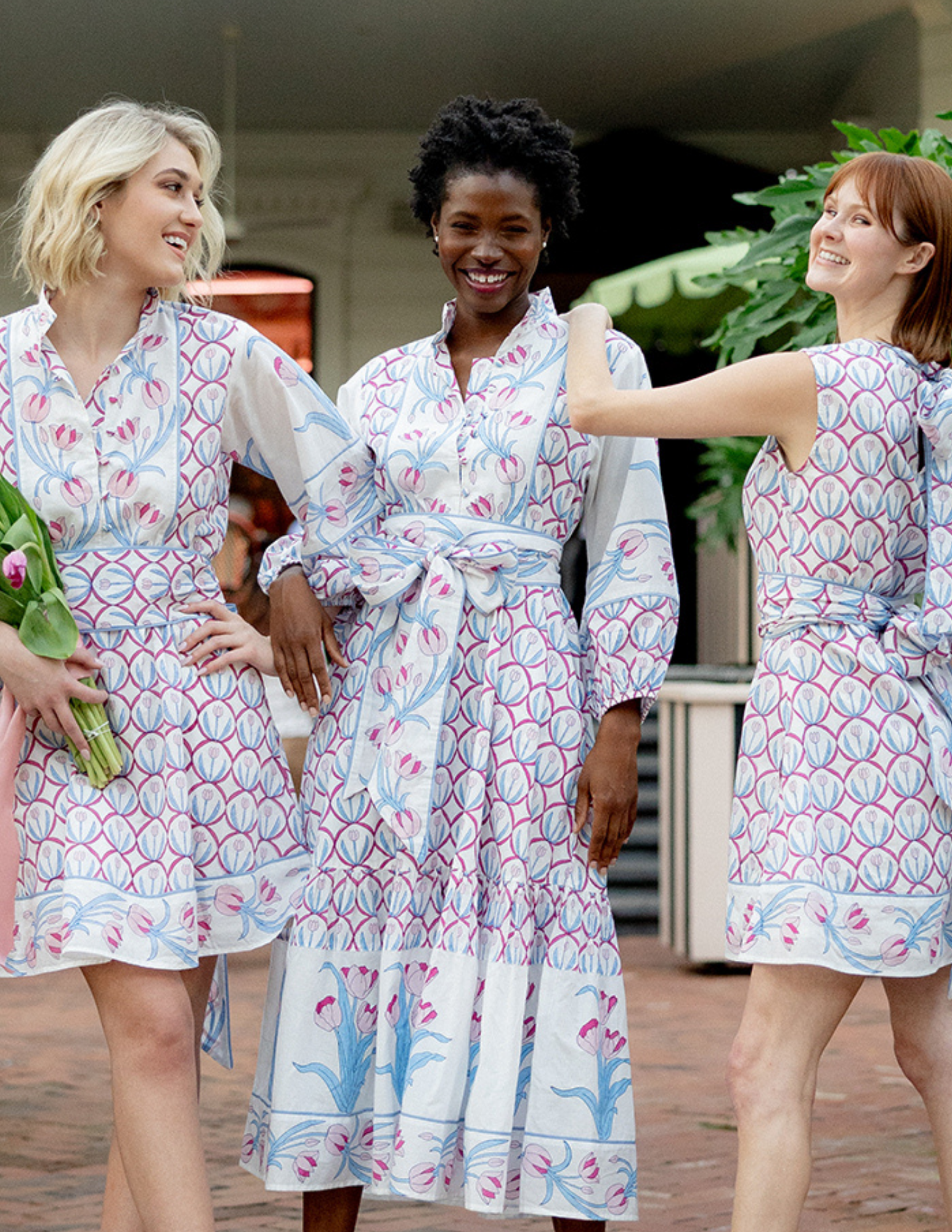 The prints are a big part of what draws people in. They’re created using traditional block printing techniques, many in partnership with artisans in Jaipur, and you can see that craftsmanship in the layering of color and pattern. Nothing feels flat or mass produced. There’s depth, a slight irregularity in the best way, and a sense that someone’s hand was actually involved in making it.